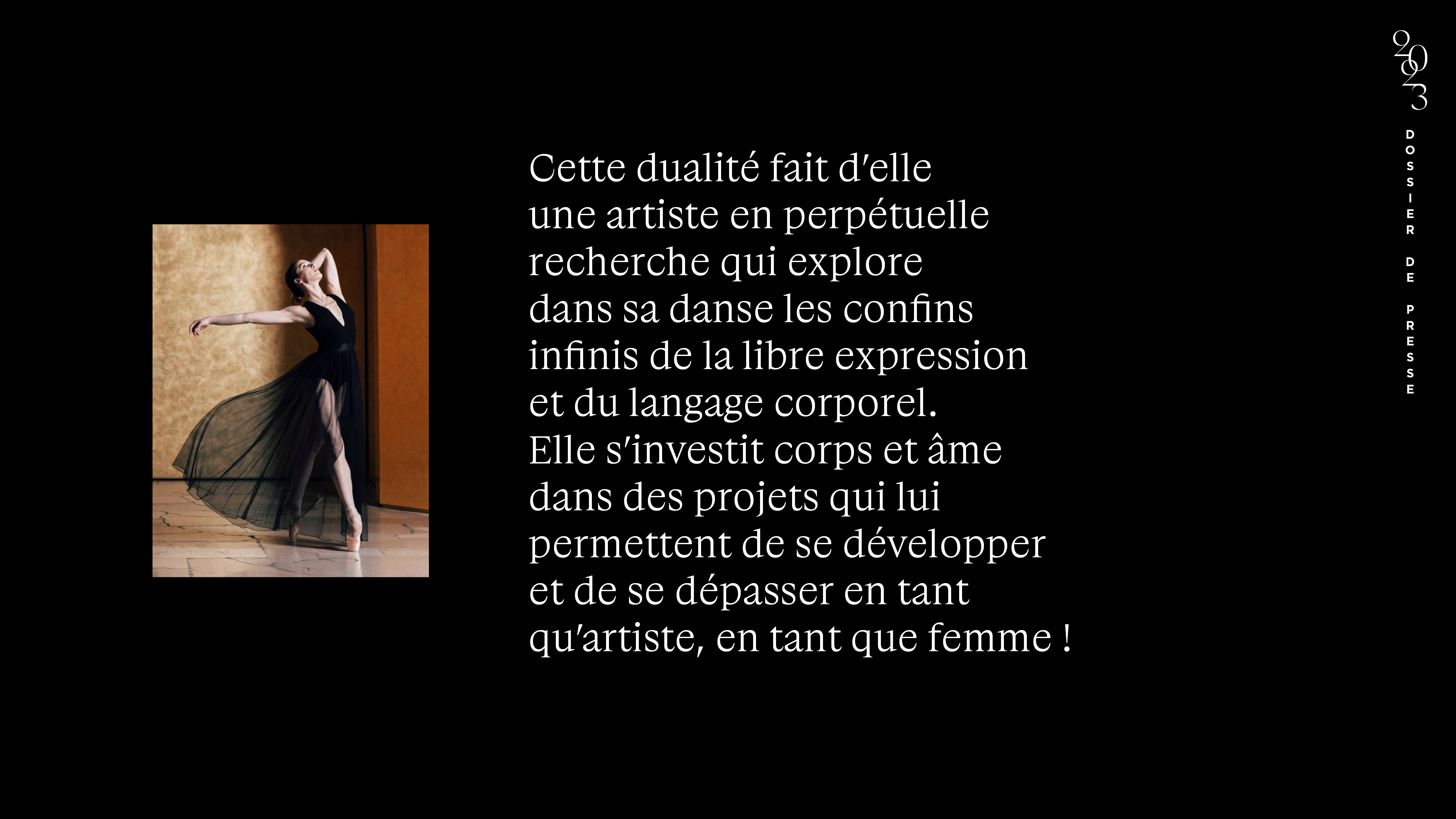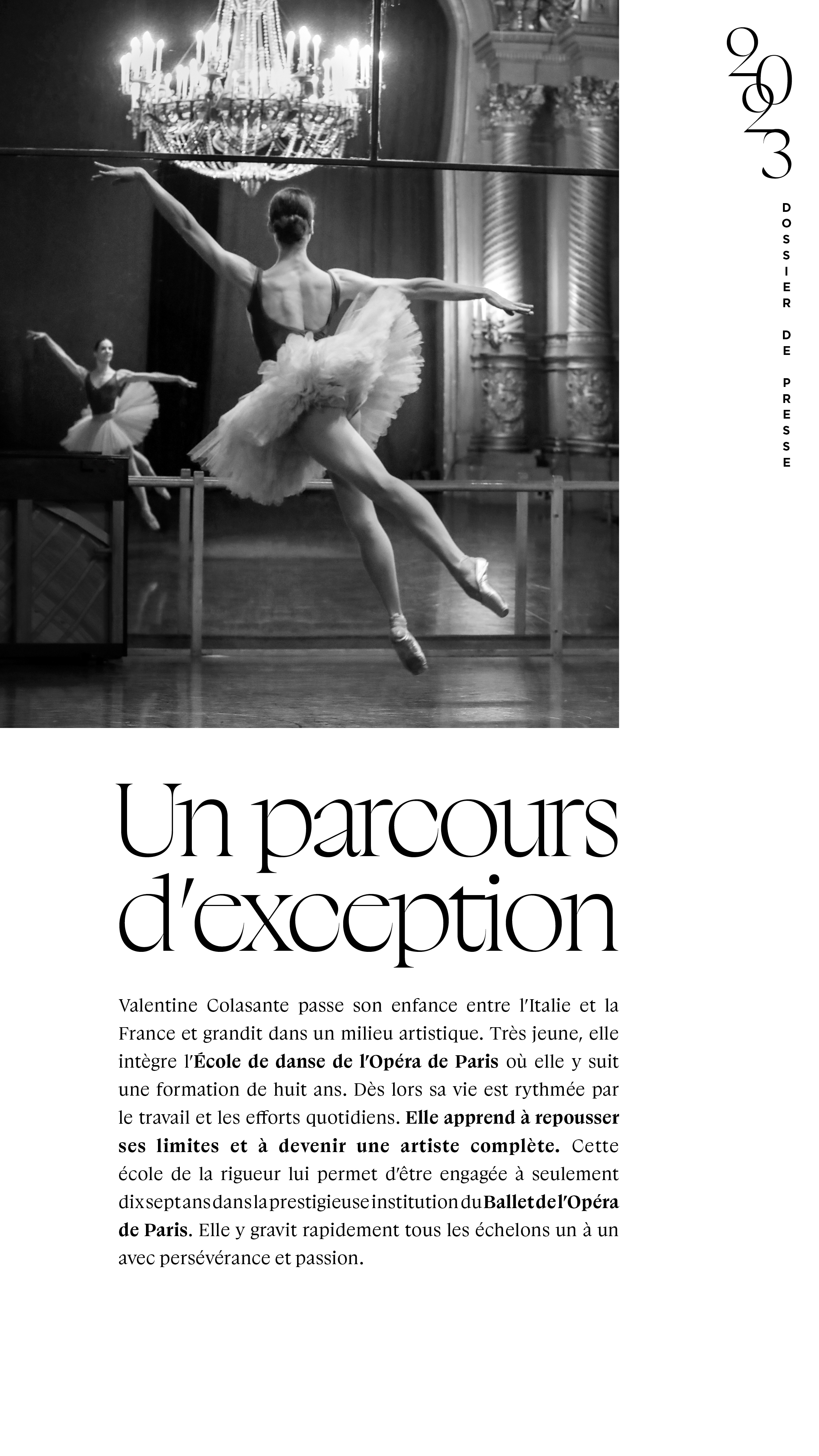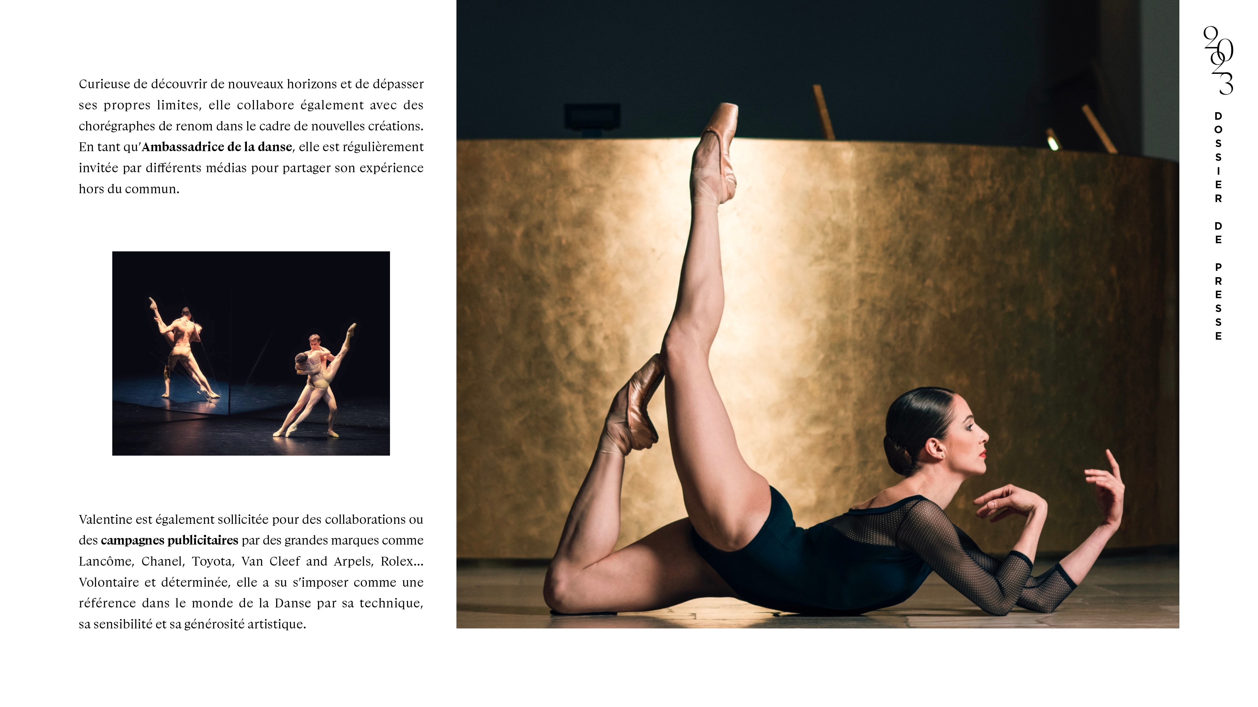 Dossier de presse pour la danseuse Étoile à l’Opéra de Paris.